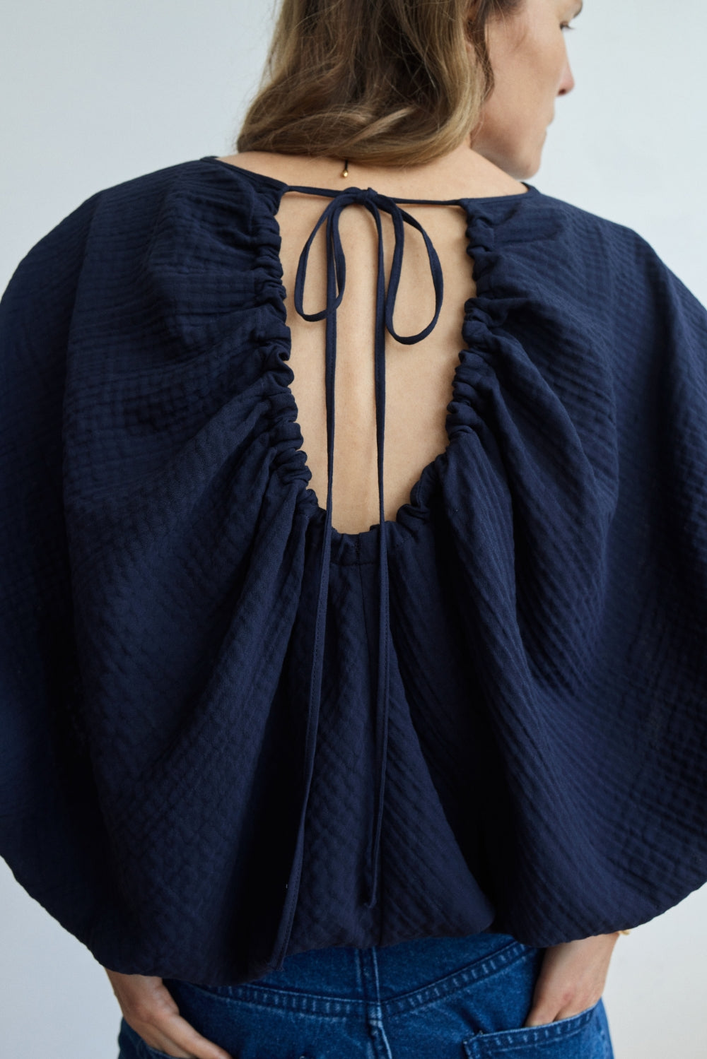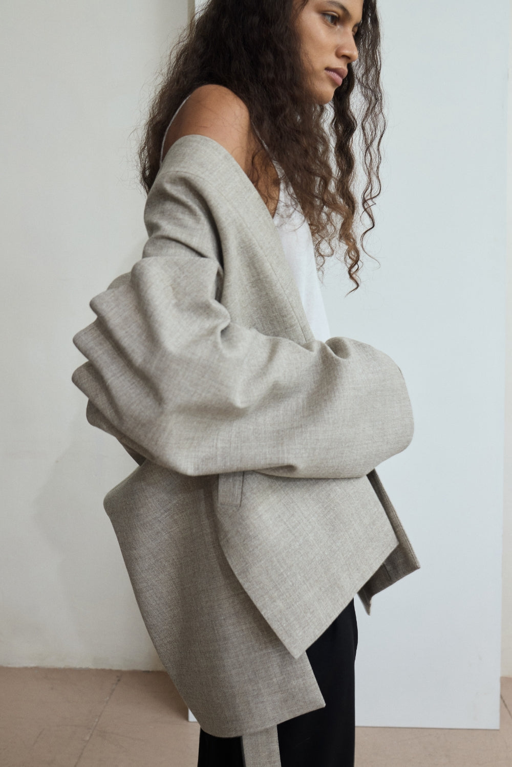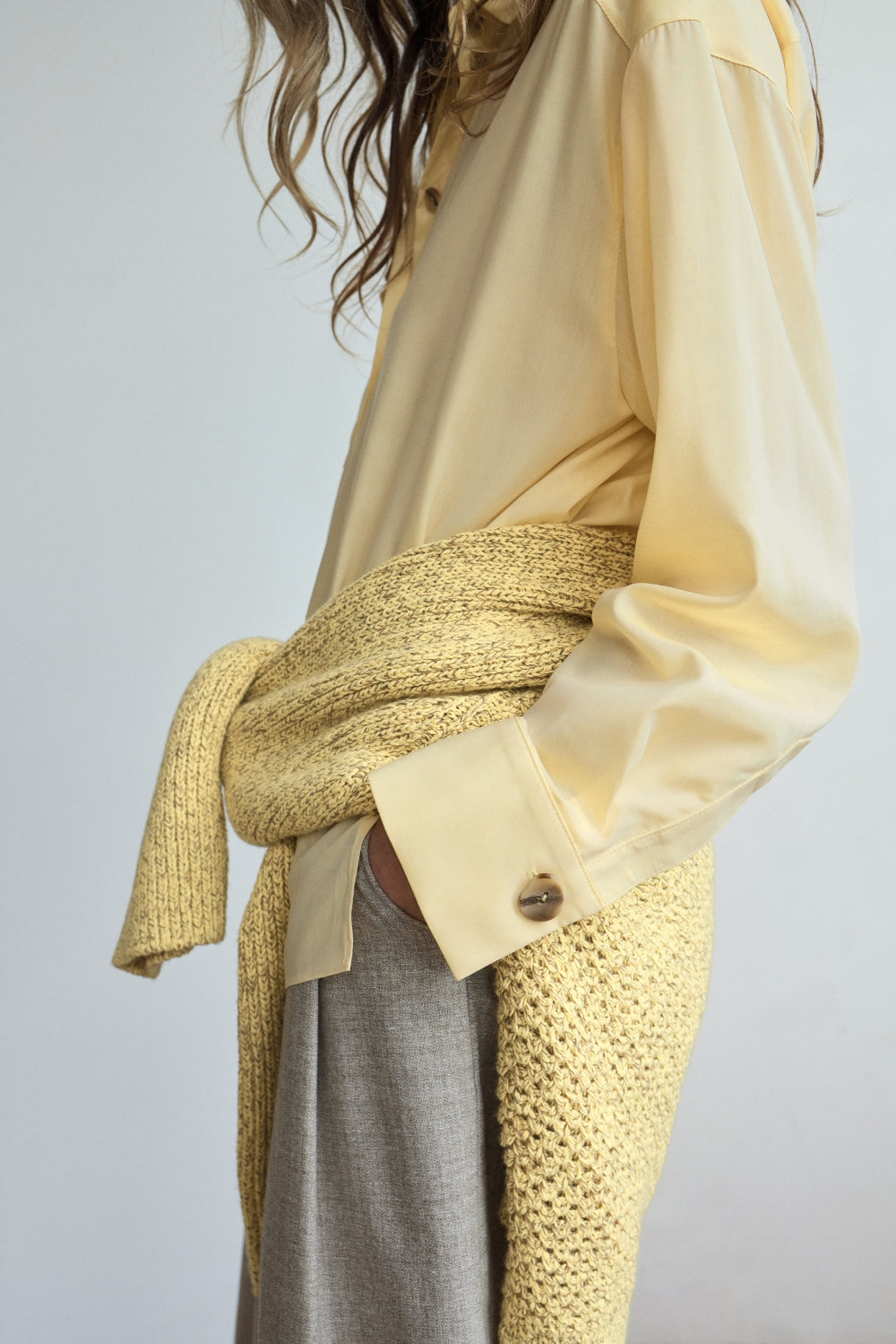 The Collection introduces three new colours to the AKYN wardrobe – butter yellow, chocolate brown and navy, as well as a new navy and white irregular stripe print. They sit alongside a foundation of fresh whites and the return of our signature undyed wool-linen tailoring.
