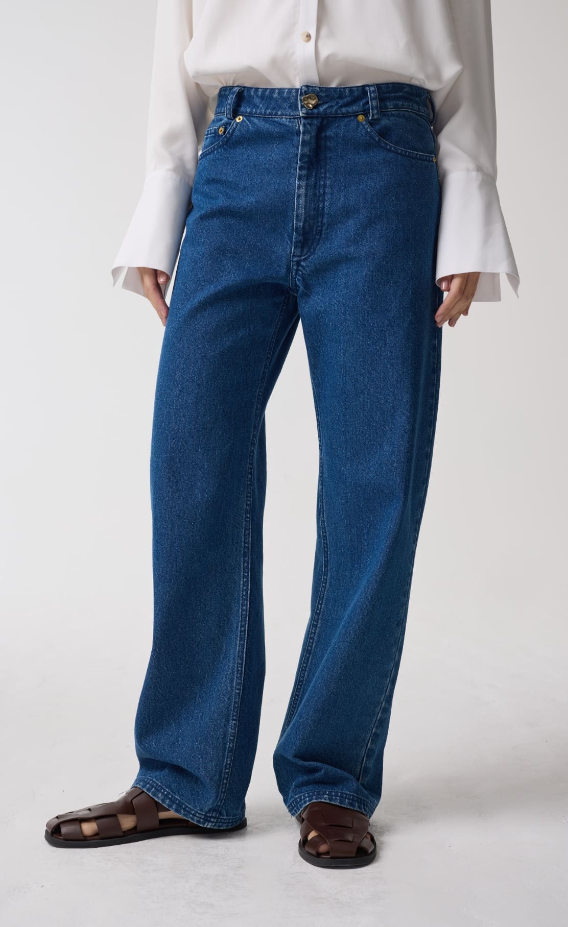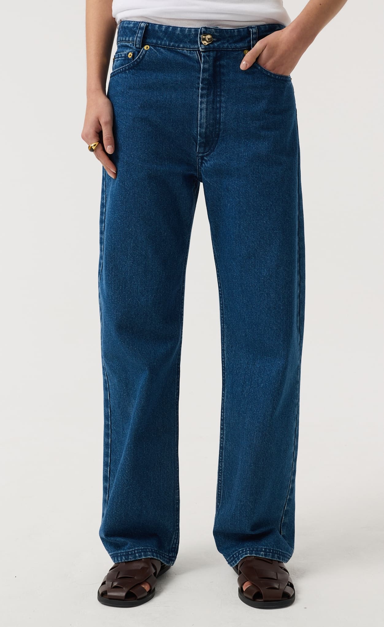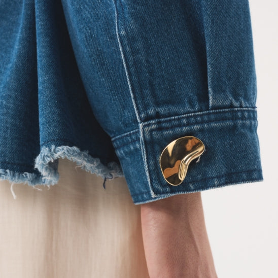 AKYN denim is at once timeless and directional, rooted in our ethos of elevating wardrobe staples with our signature detailing. We've reinterpreted this workwear classic for effortless day-to-night dressing, with our signature brass hardware giving a subtle point of elevation.