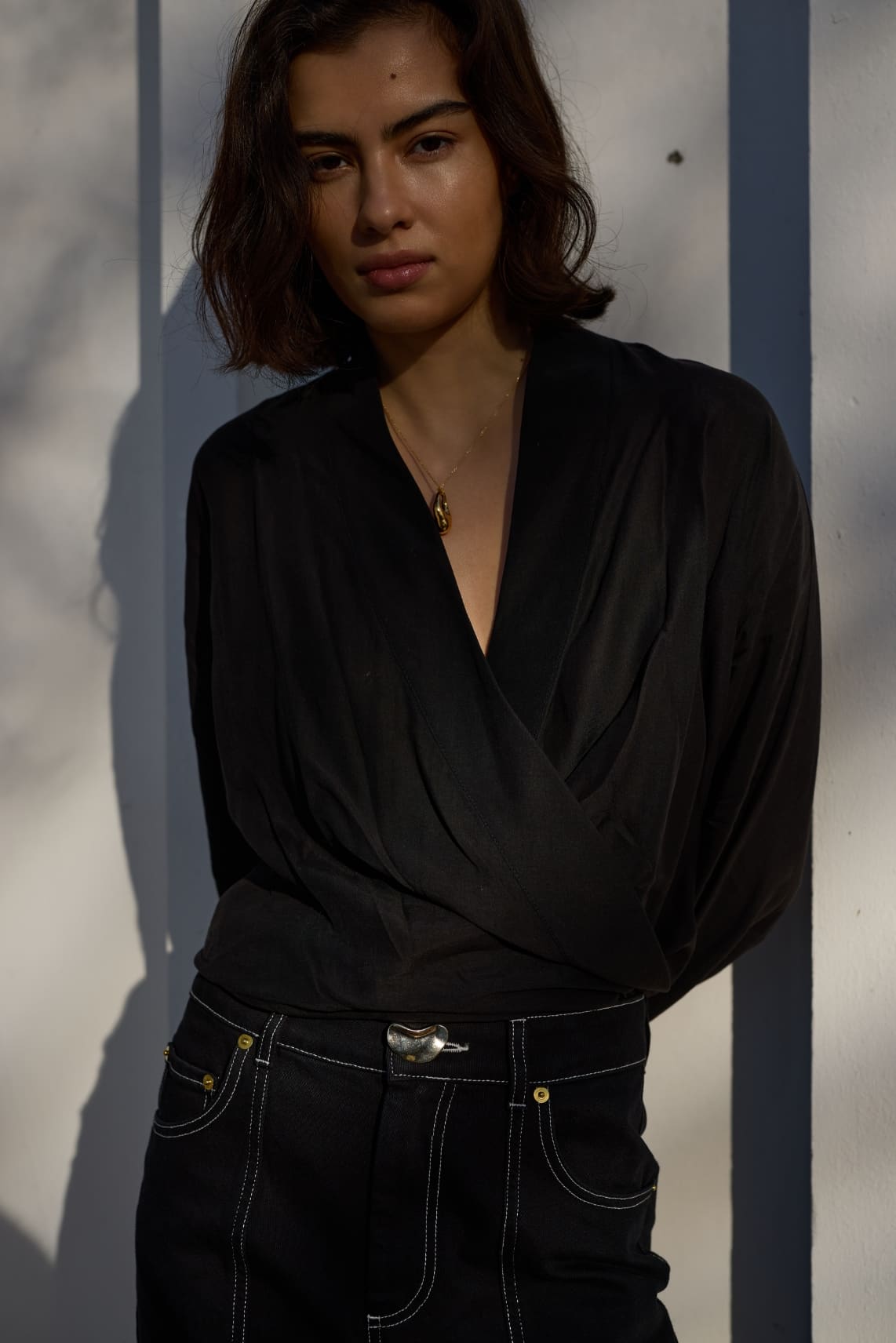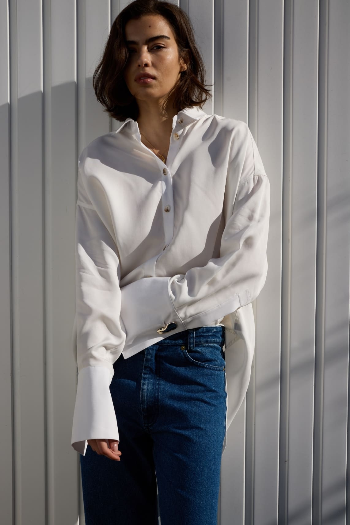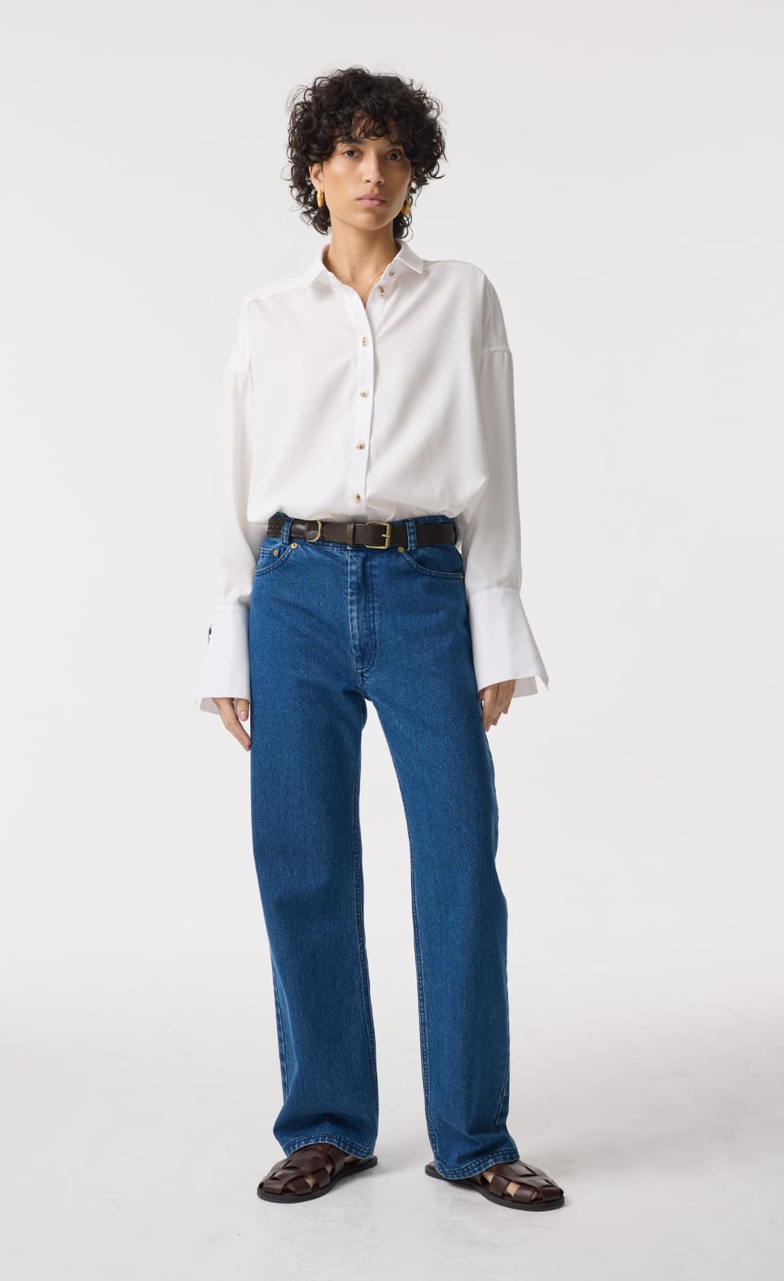 AKYN denim is at once timeless and directional, rooted in our ethos of elevating wardrobe staples with our signature detailing. We've reinterpreted this workwear classic for effortless day-to-night dressing, with our signature brass hardware giving a subtle point of elevation.