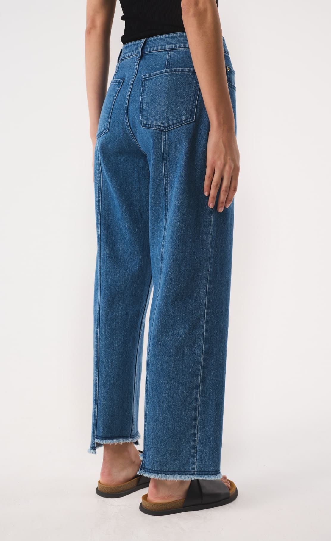 - Stepped, frayed hem
