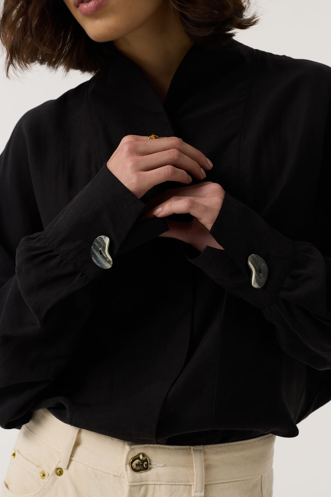 - Kimono-style wrap jacket