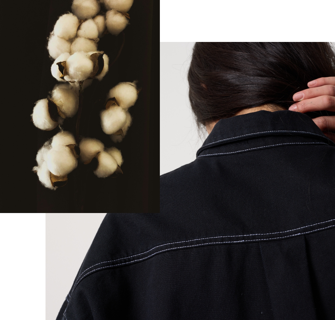 Our black denim has been crafted from 100% regenerative cotton, meaning that the cotton has been grown in a way that actively nurtures the soil and ecosystems to ensure the health of the land and the local communities.