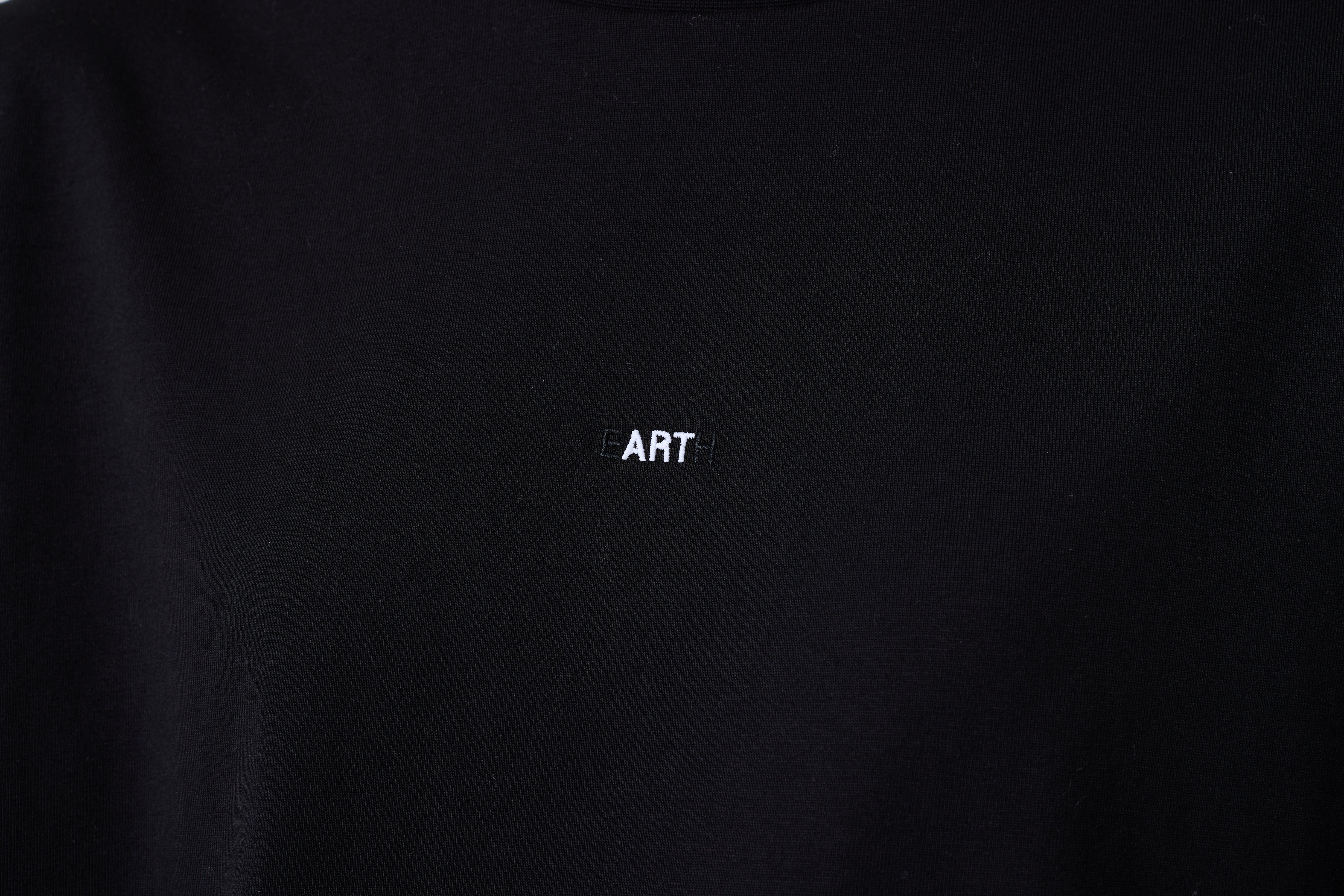 Cut from soft organic cotton jersey, the Adria is a classic black crew-neck T-shirt, embroidered with the word ‘EARTH’ across the chest. Designed with a relaxed fit and soft to touch, it features a two-tone embroidery – the ‘E’ and ‘H’ stitched in black, blending subtly with the fabric, while ‘ART’ stands out in white, celebrating the art within Earth. After all, Earth without Art is just 'Eh'.