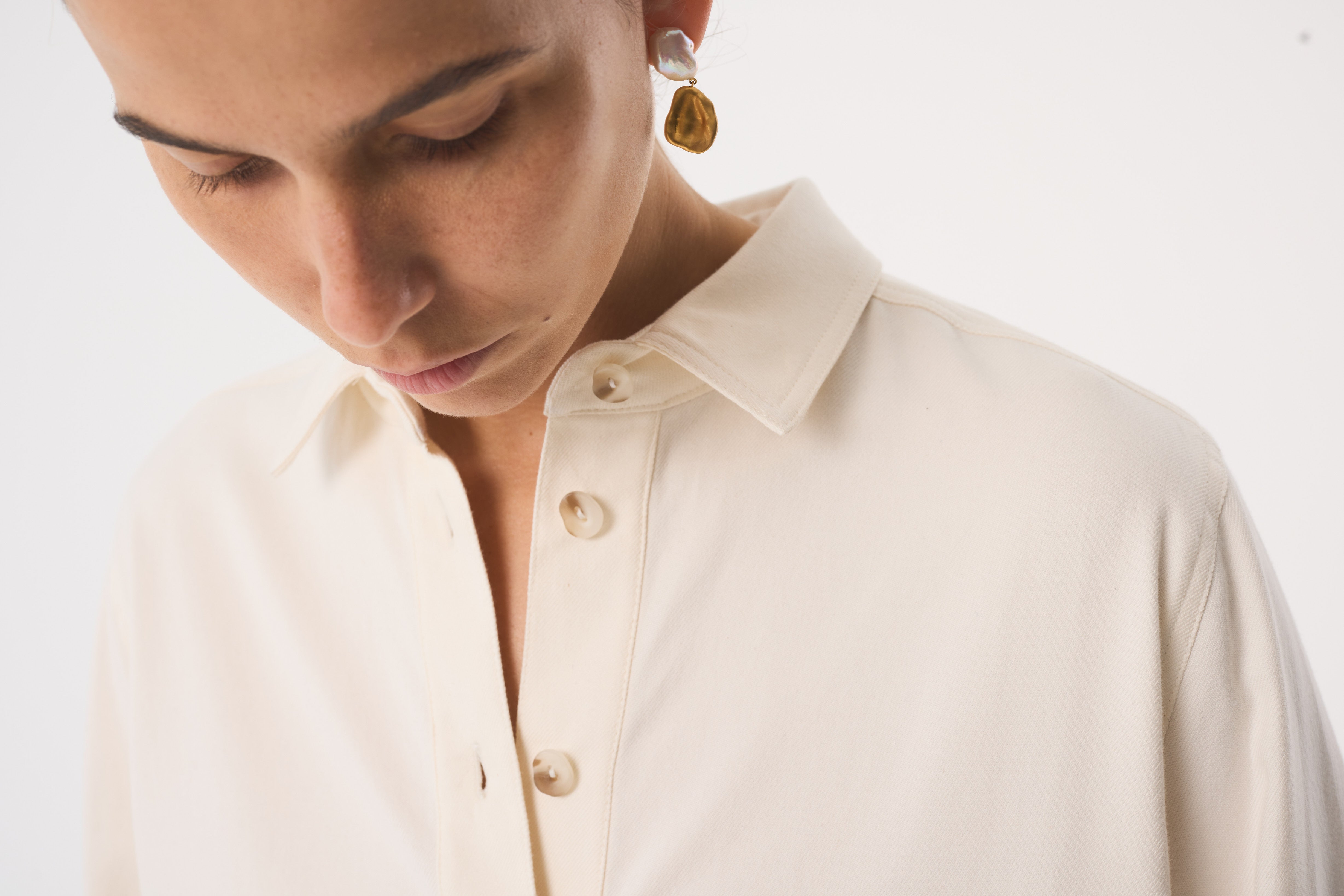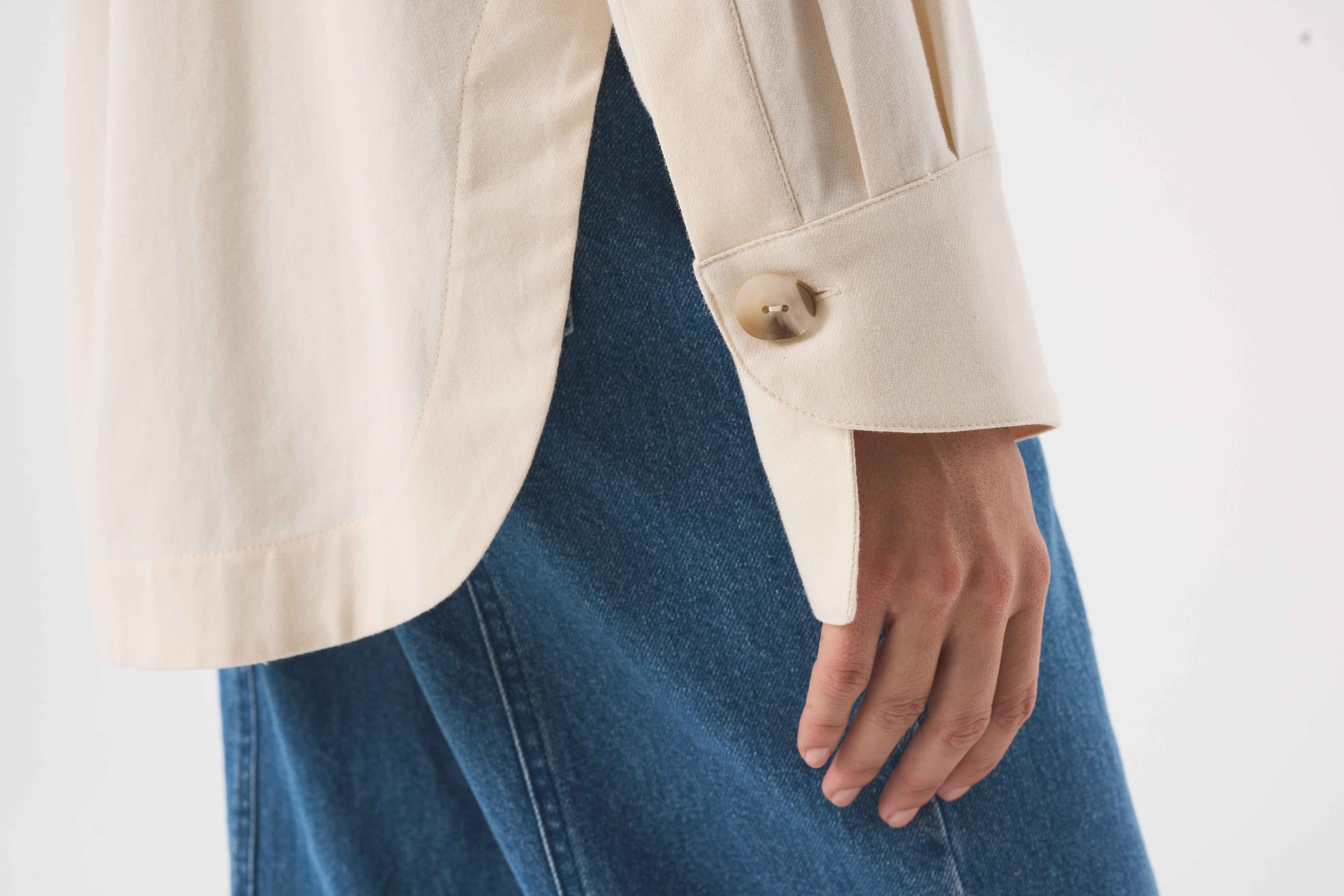 Fable is our shirt in undyed 100% regenerative cotton, cut with clean lines and an asymmetric cuff detail. A quietly distinctive staple, rooted in natural materials and thoughtful design.