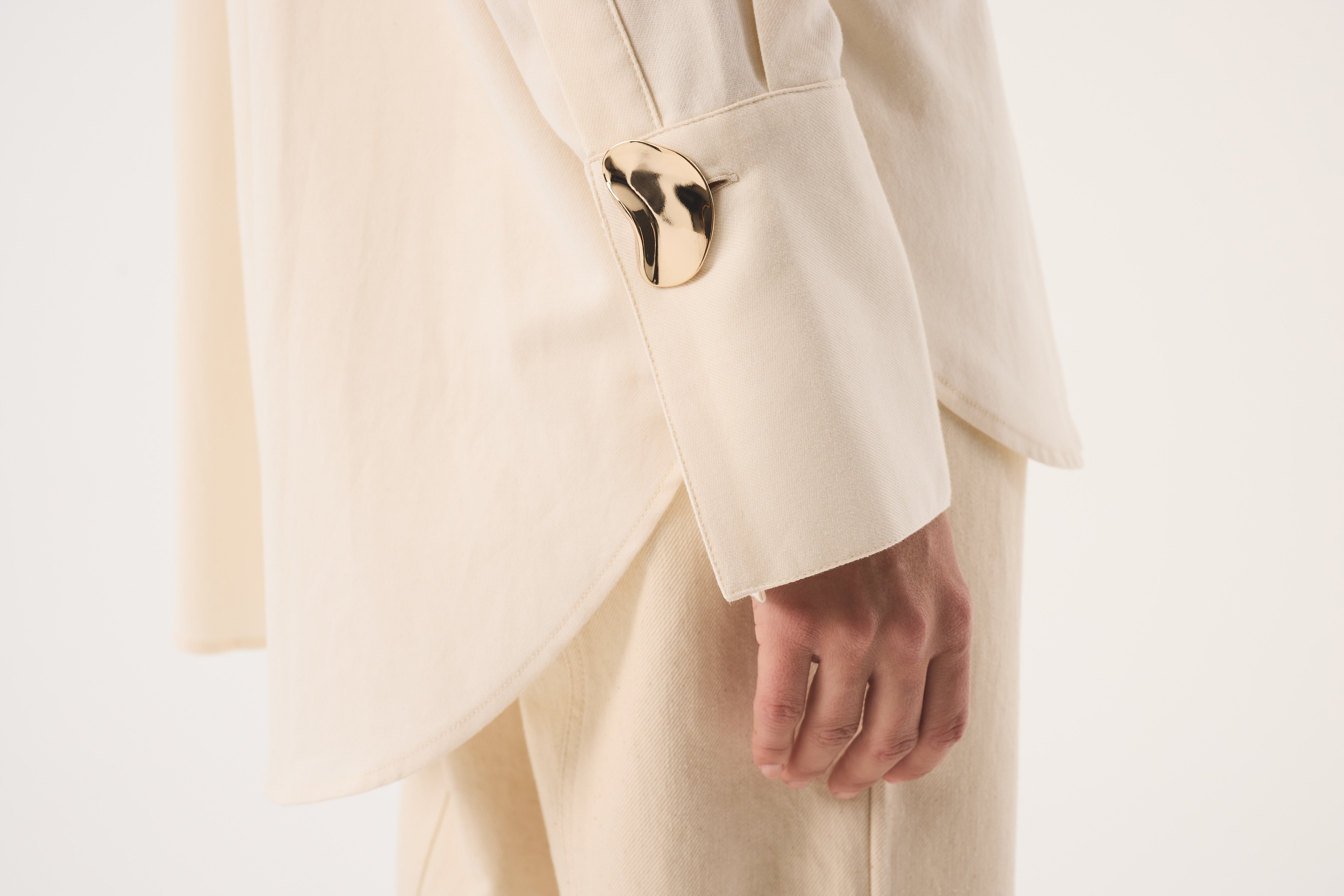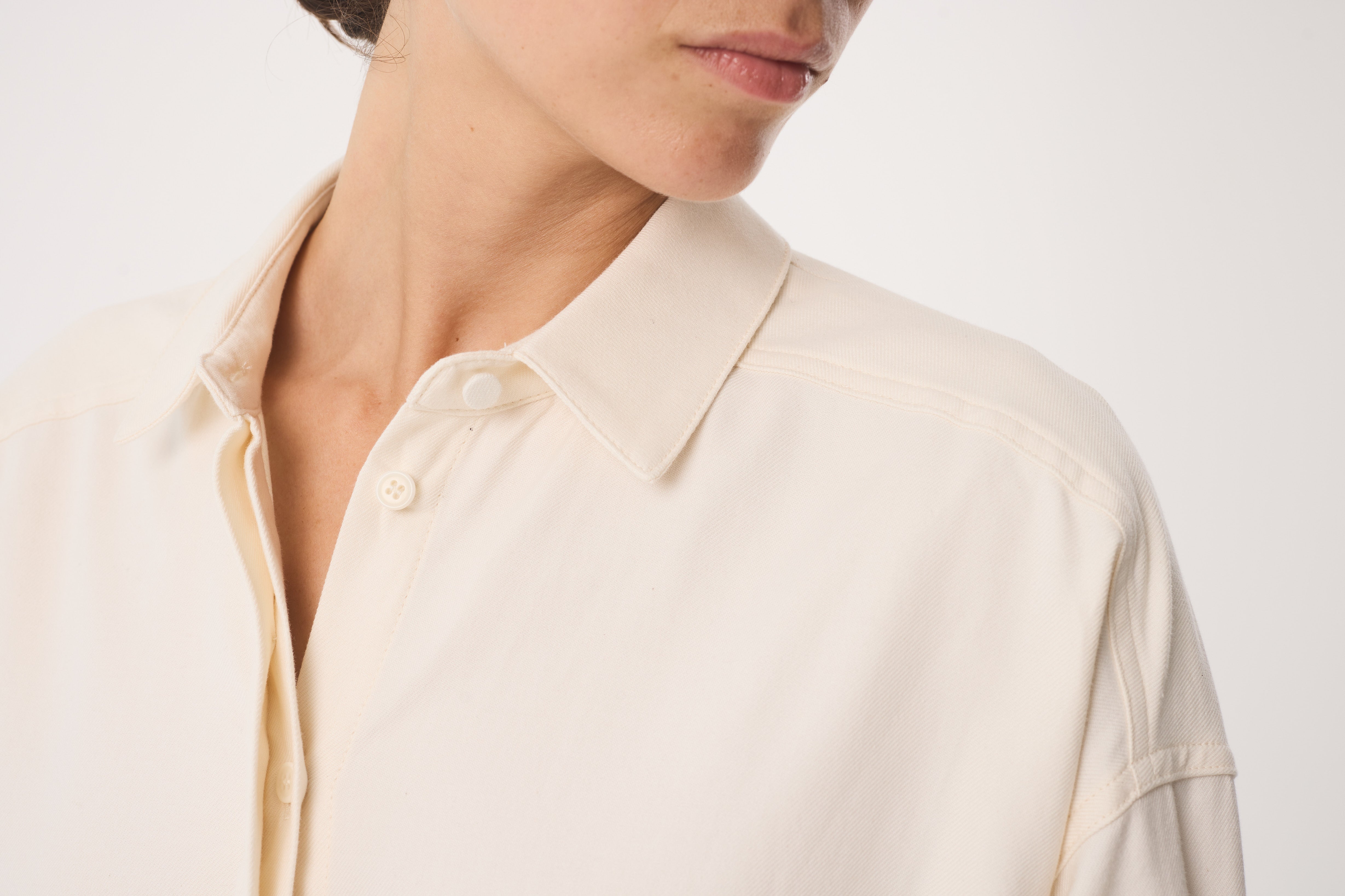 Fenella shirt is cut from 100% regenerative cotton and finished with our signature gold kidney button on the cuff.