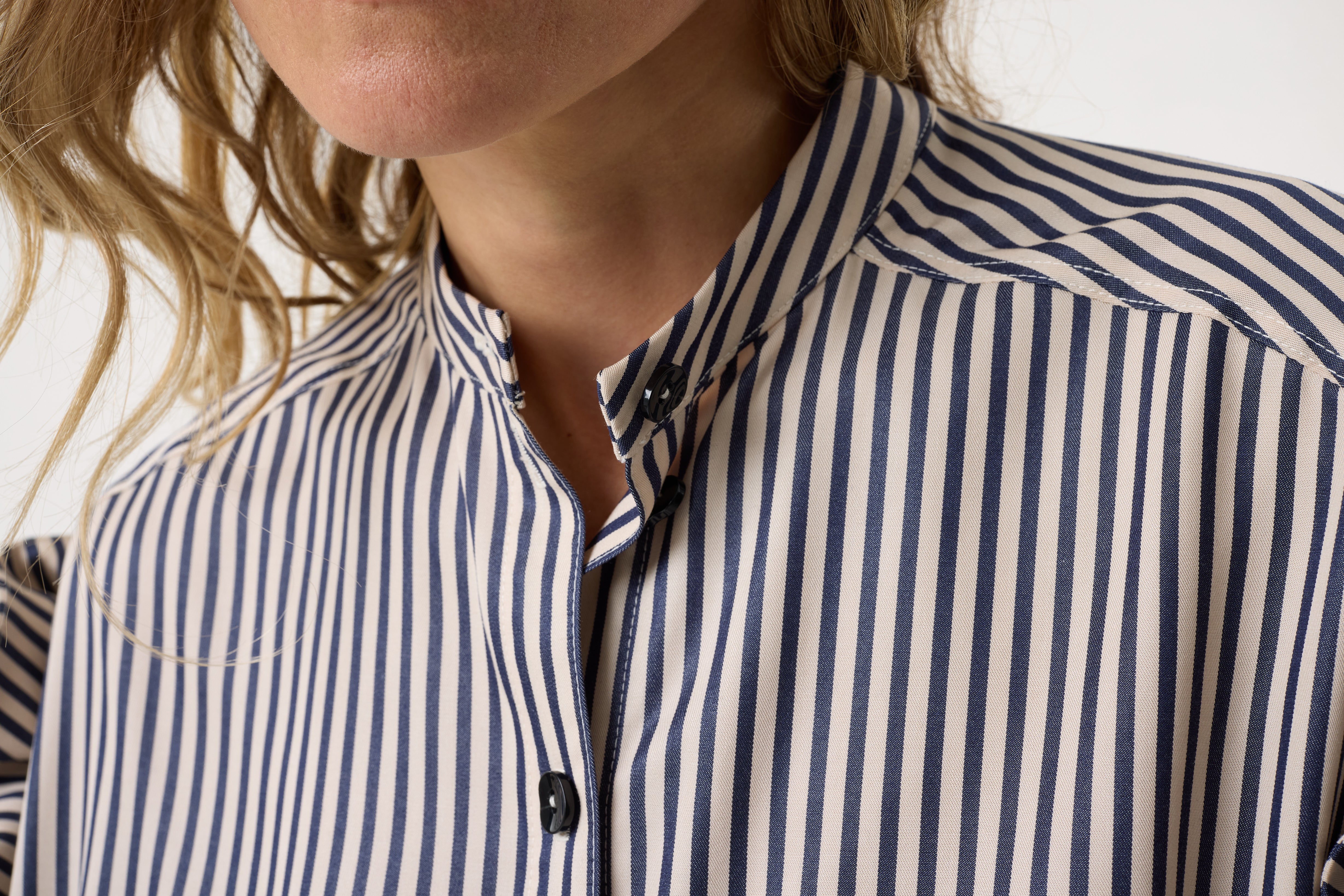Kaia is our navy and cream striped shirt crafted from soft TENCEL™ Lyocell. Designed with a laid-on sleeve detail for an elevated a point of difference, this reimagined classic stripe shirt can be styled up or down for work or weekend dressing.
