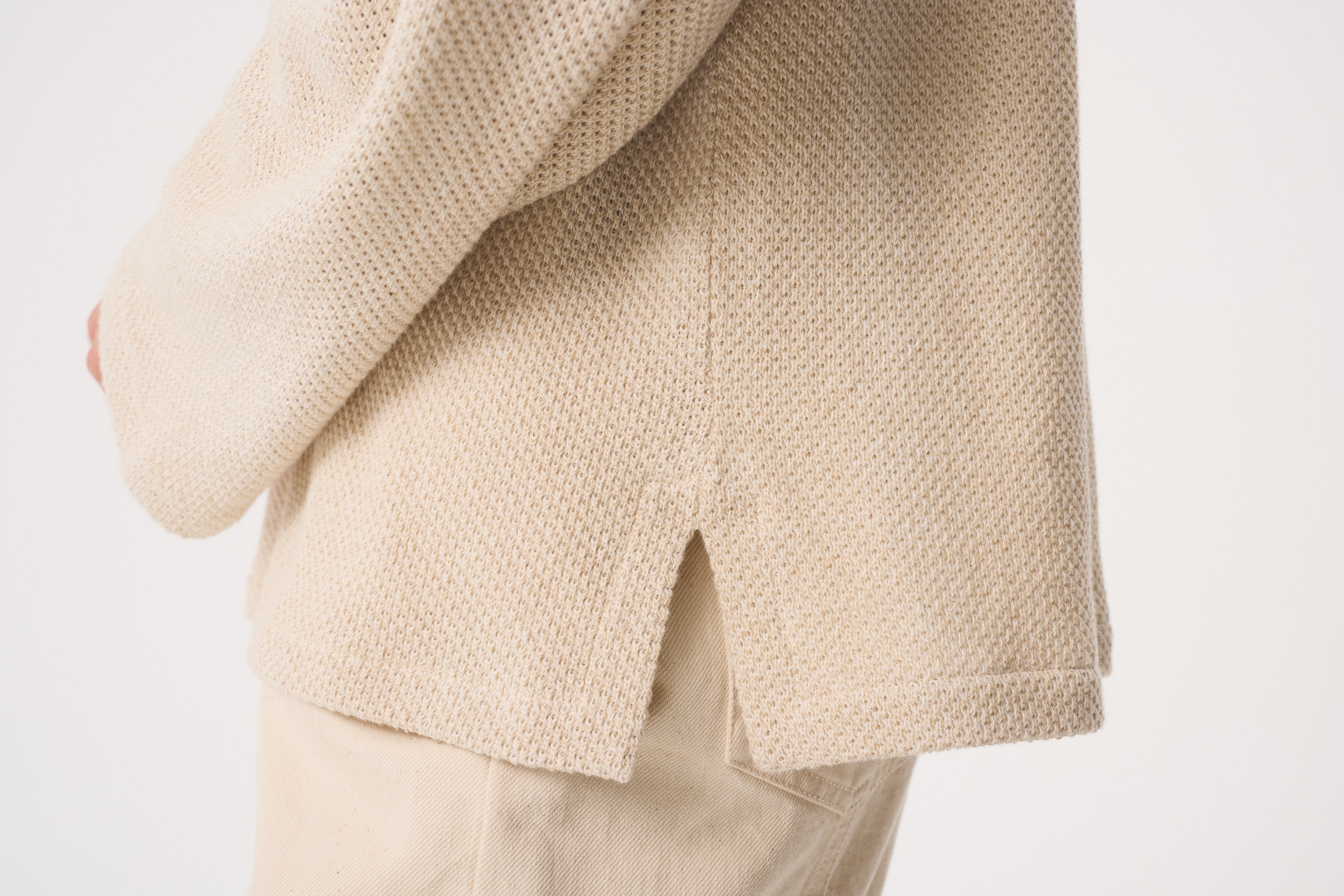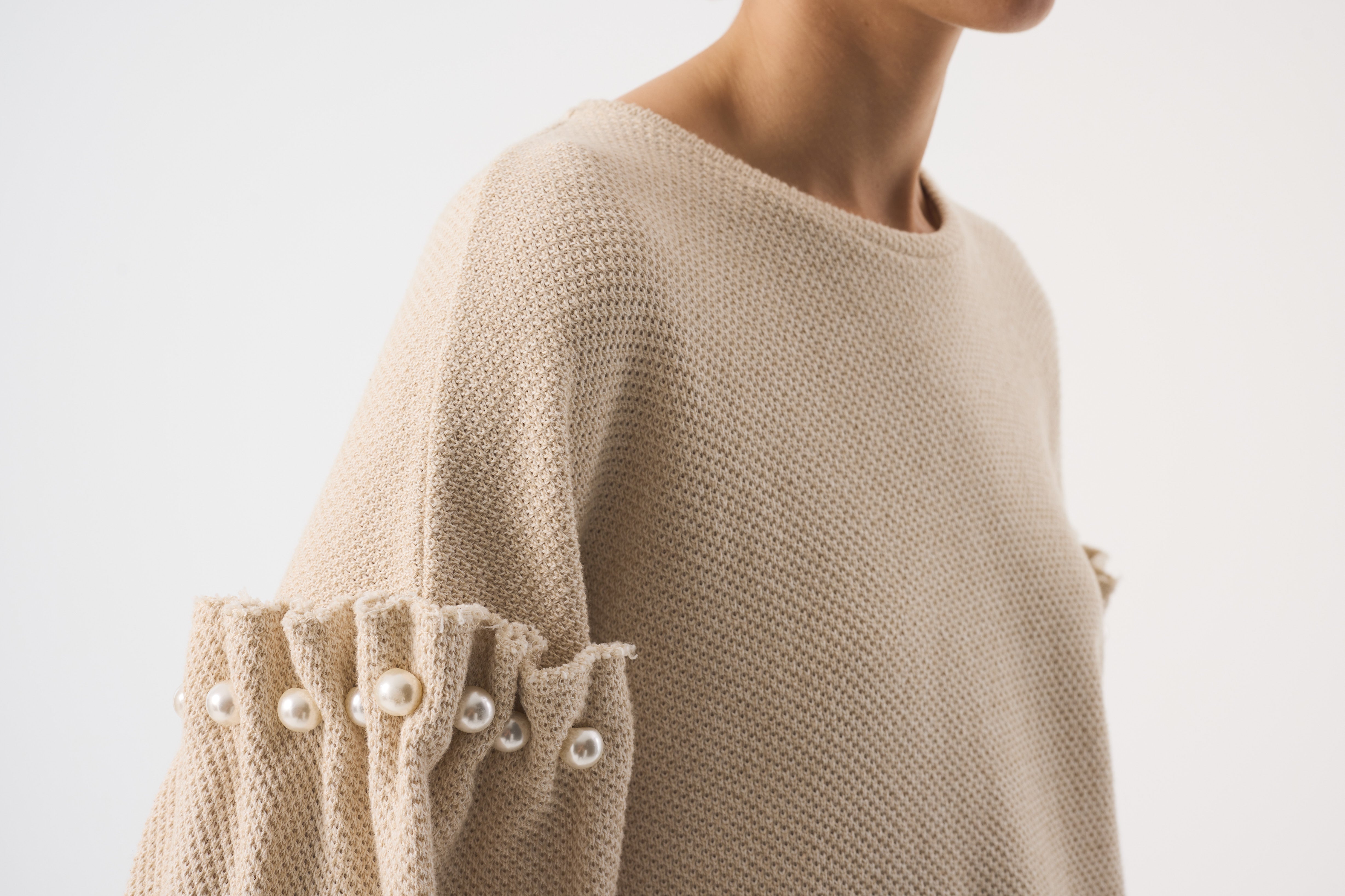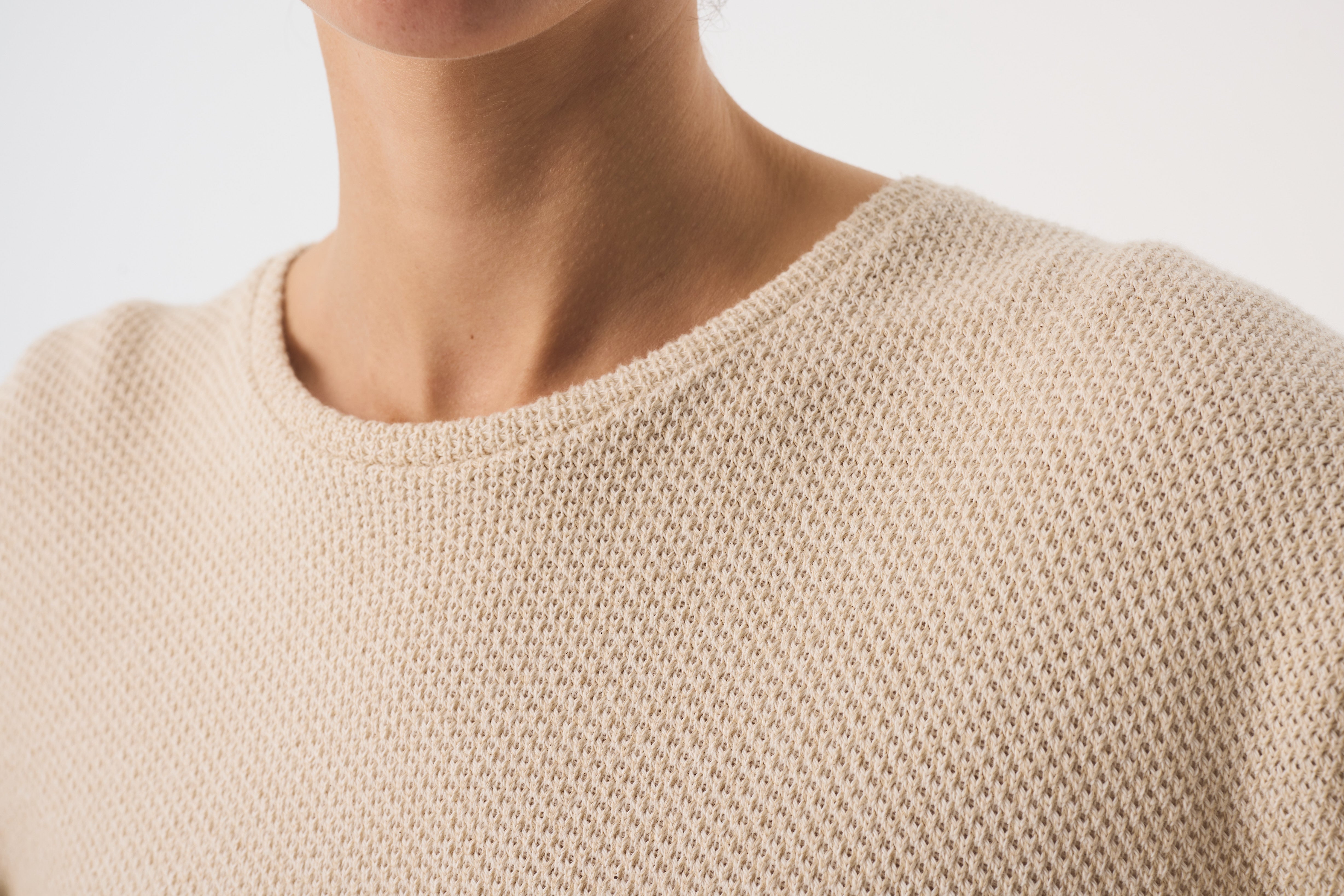 Morgan is our crew neck top in sand piqué jersey, crafted from 100% organic cotton. Detailed with faux pearl buttons at the sleeve, it’s a relaxed essential with an elevated finish