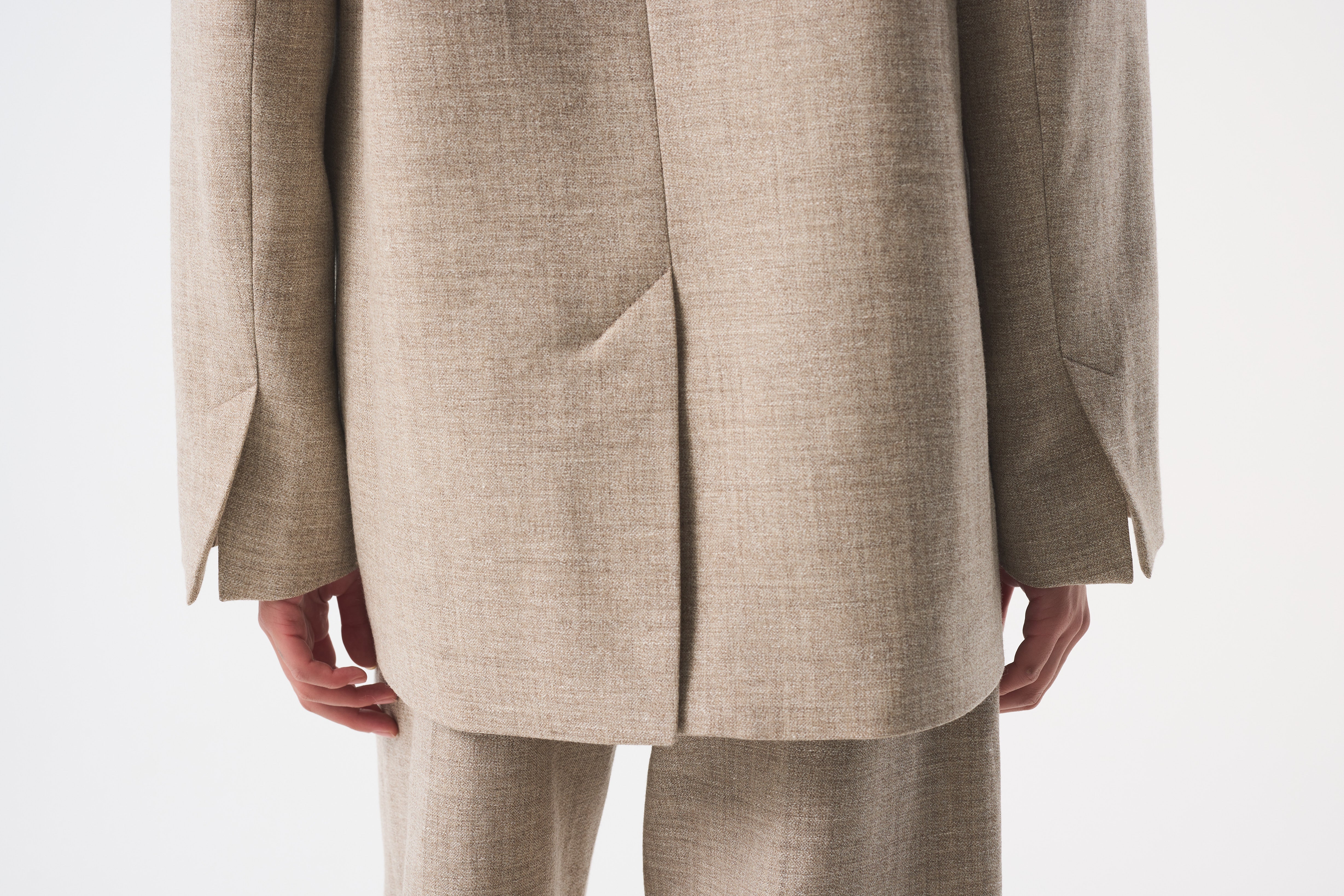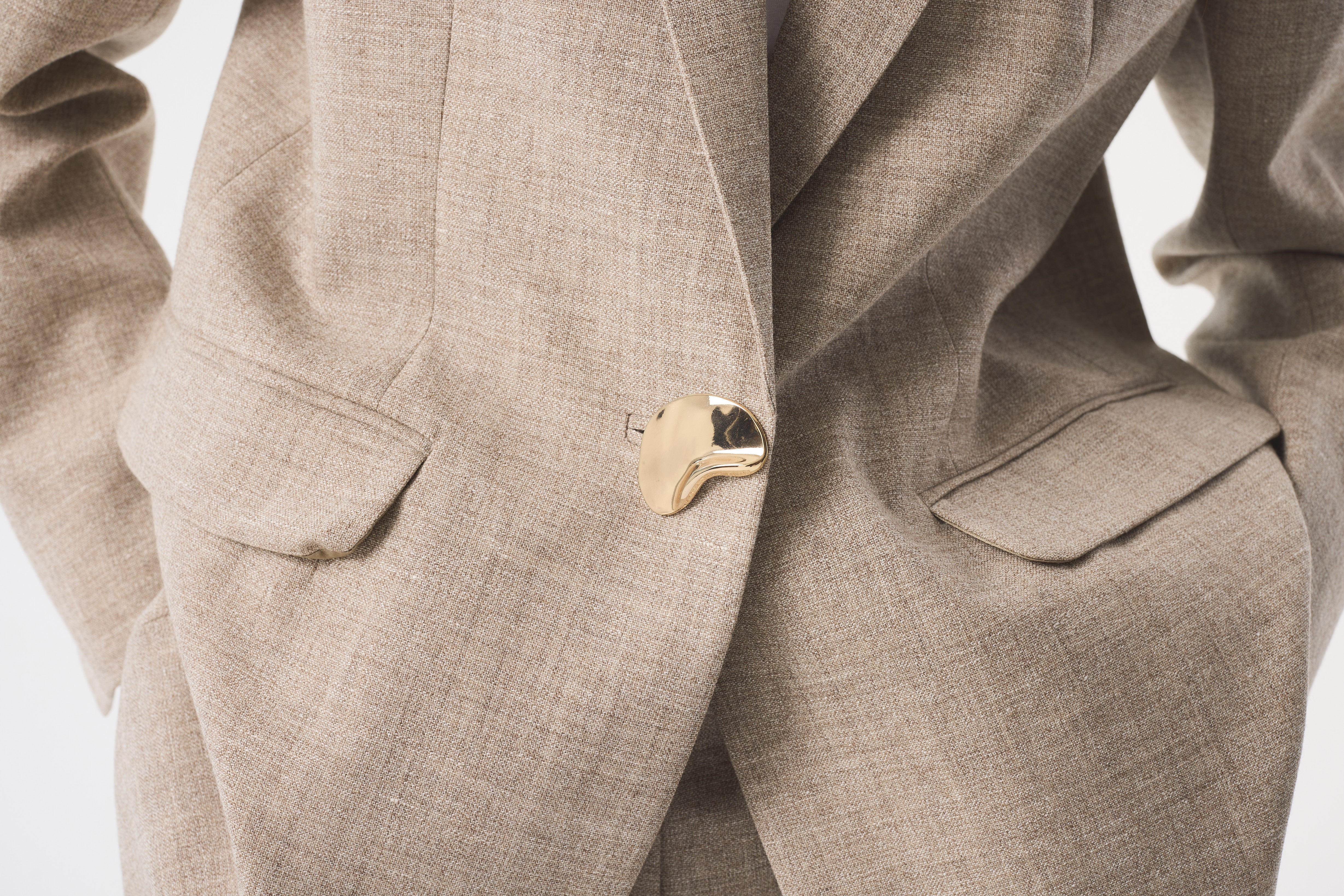 Noor is our signature jacket, cut from a considered blend of undyed European flax linen and responsibly-sourced wool in a soft, natural grey. Both fibres are left in their raw, untouched state– celebrating the beauty of nature’s original palette. Finished with our distinctive gold kidney button and designed with a relaxed, slightly oversized silhouette for modern ease.