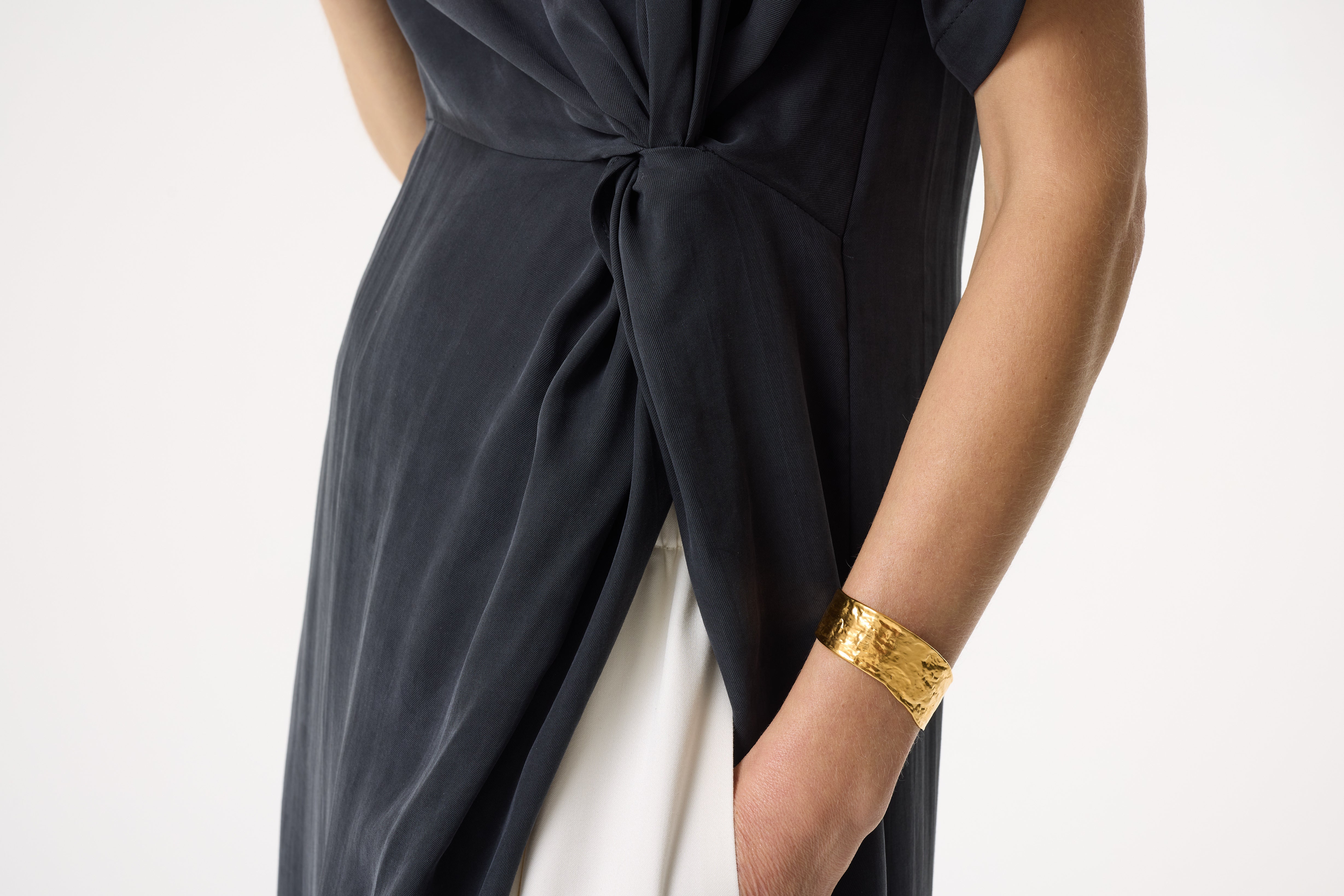 Tilda is our long-line top cut from black satin TENCEL™ Luxe. Defined by a split from the waist and knot detail, it falls with fluidity.