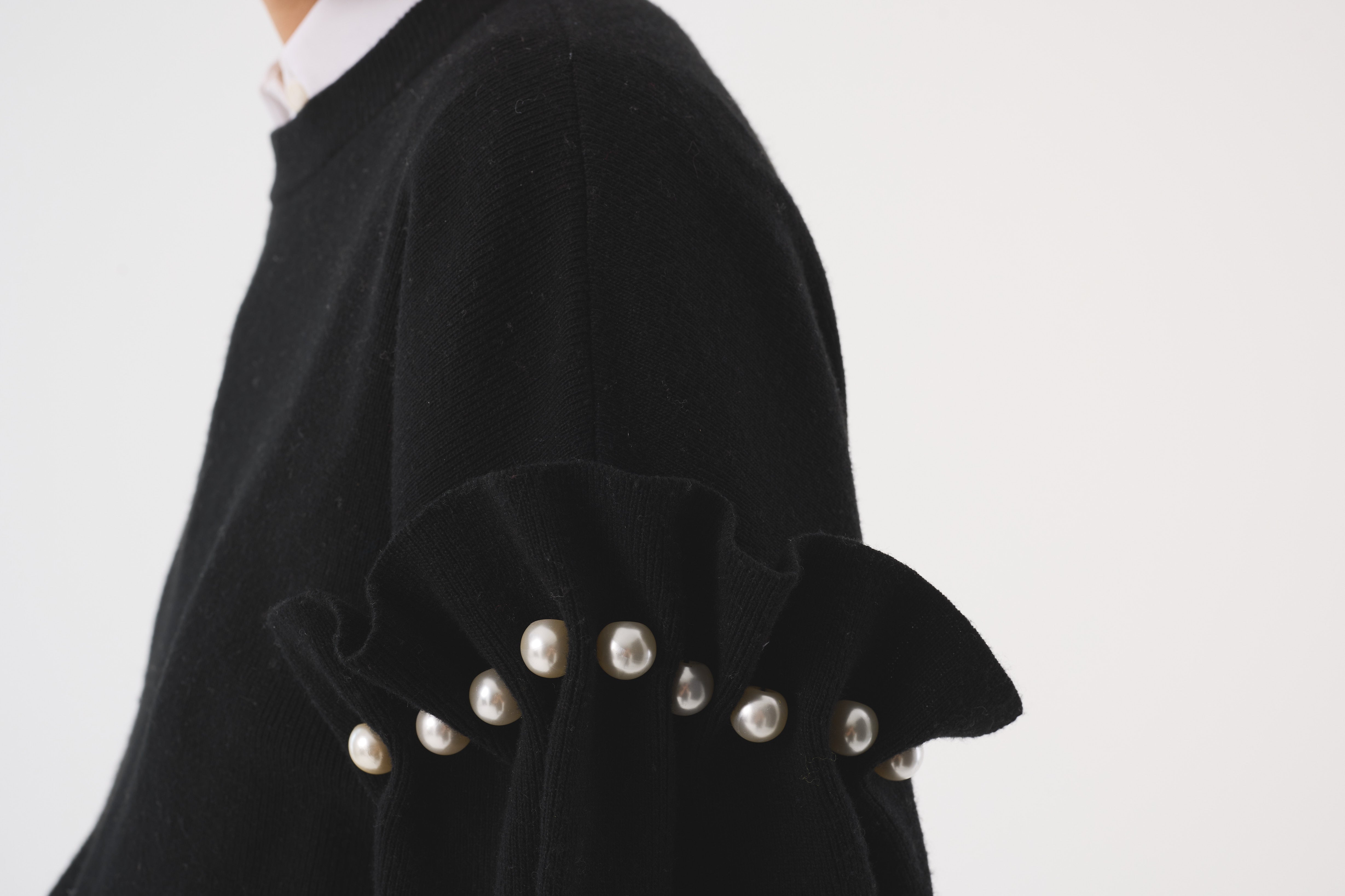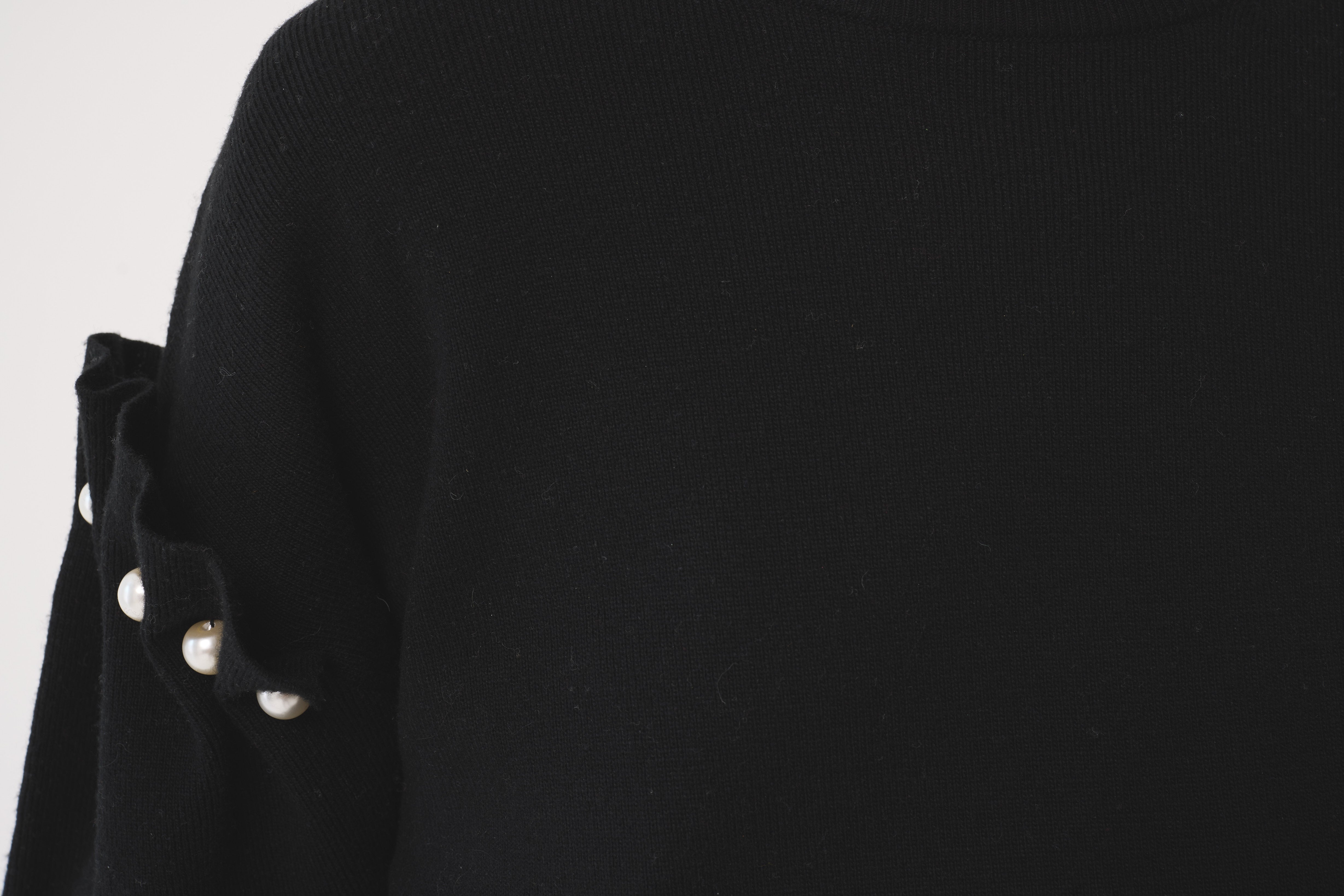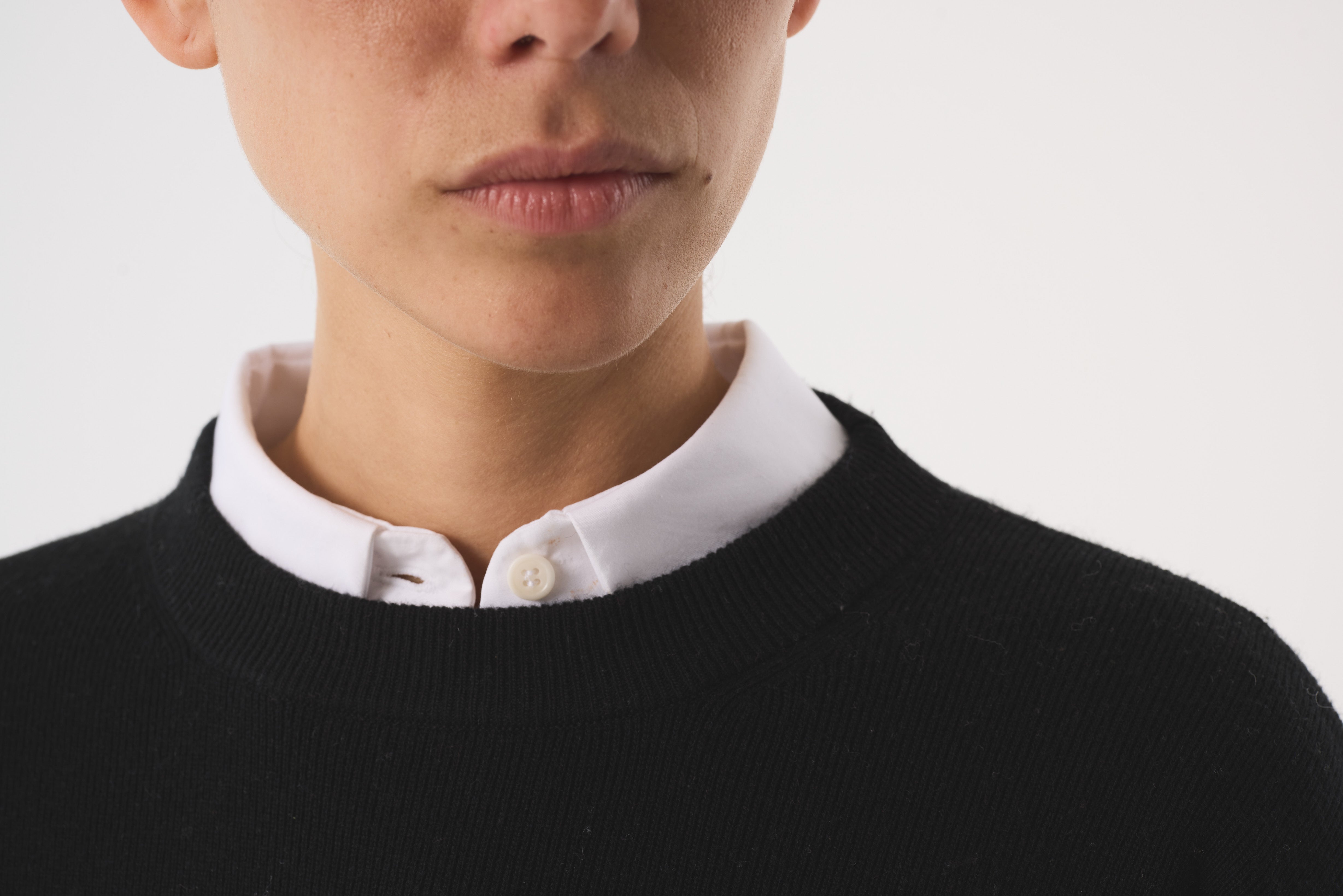 Yuki is our crew neck jumper in black marl is knitted from a lightweight blend of RWS fine non-mulesed merino wool & recycled nylon, finished with faux pearl buttons at the shoulder for a subtle point of detail.