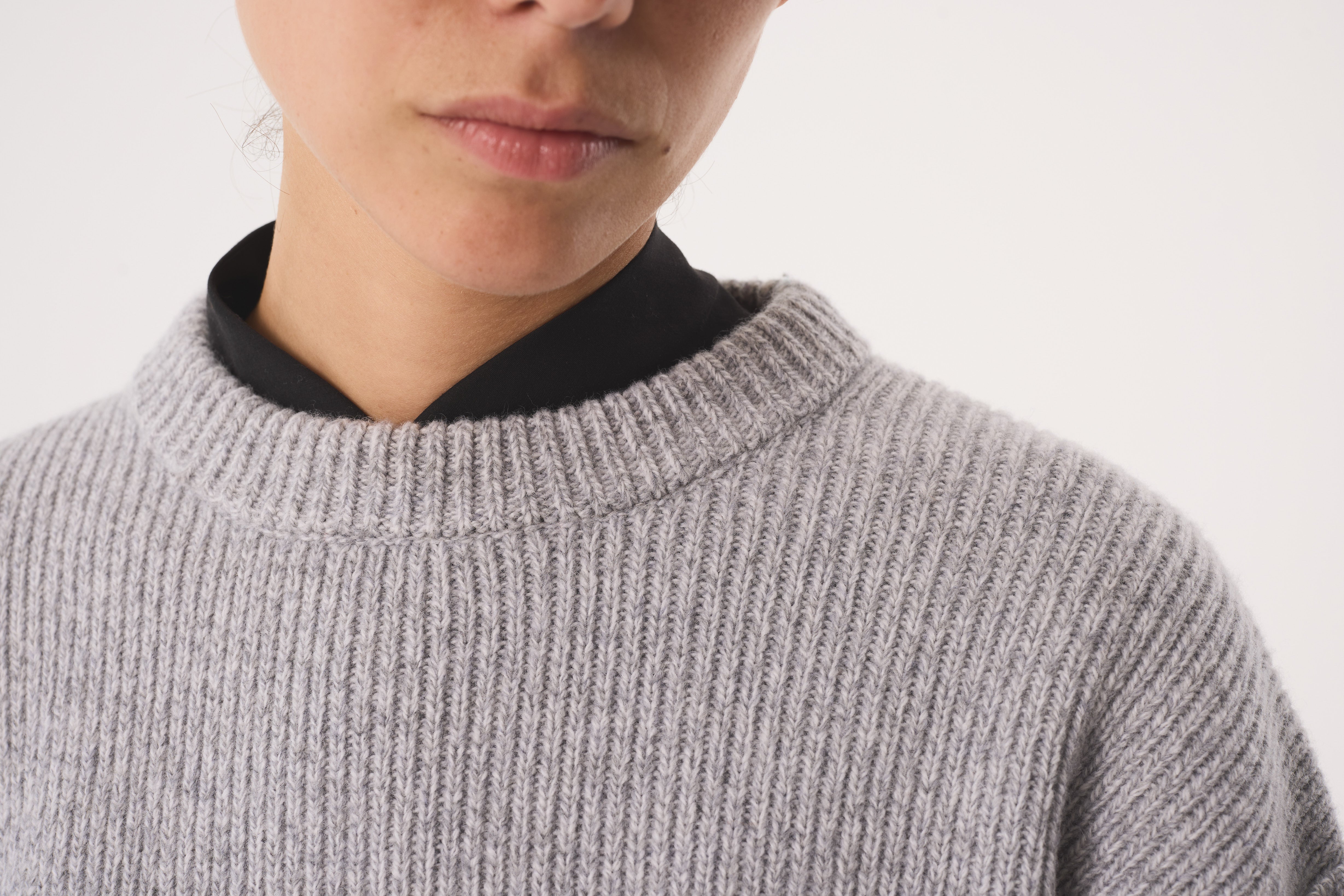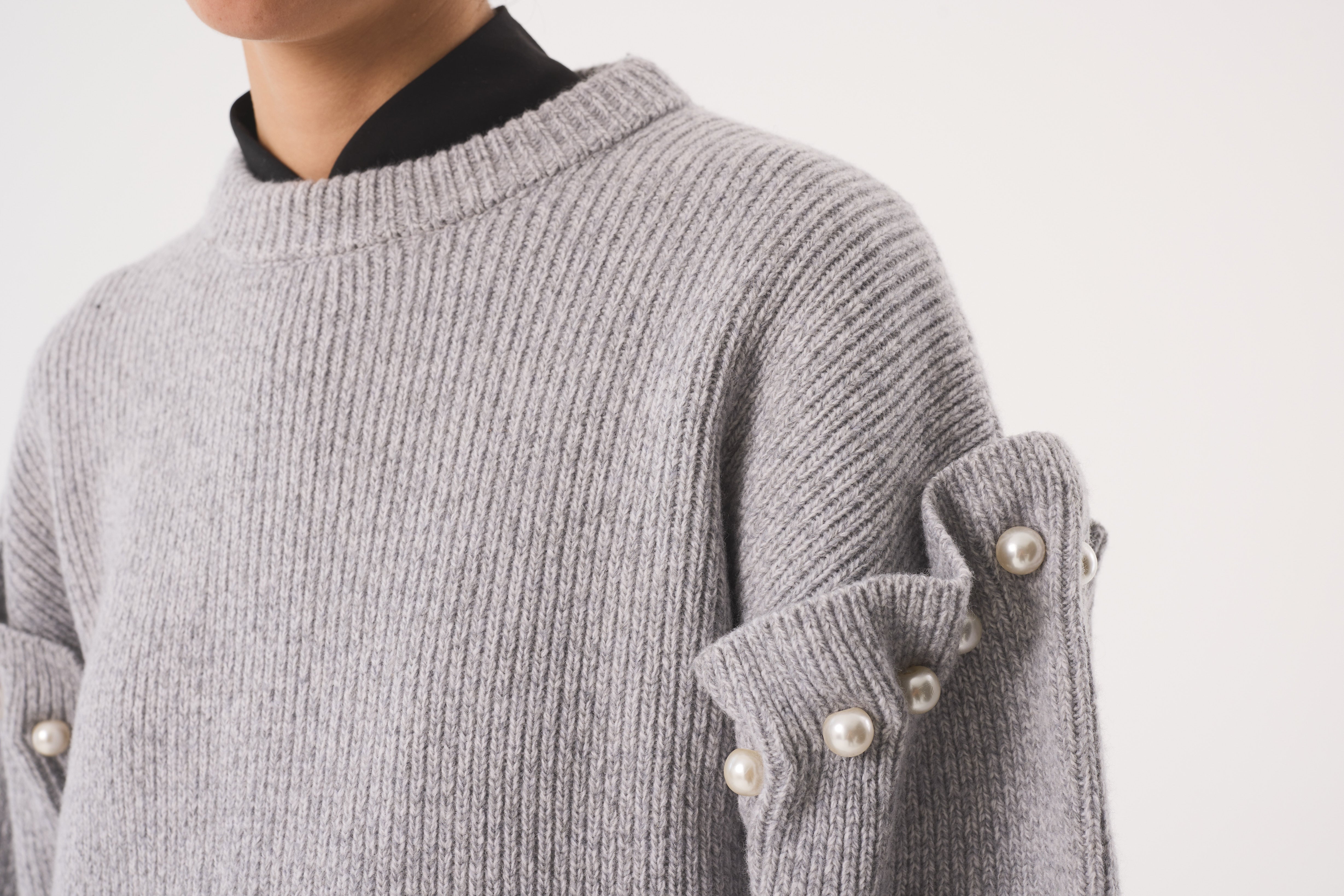 Yuki is our crew neck jumper in soft grey marl knitted in RWS wool, finished with faux pearl buttons at the shoulder for a subtle point of detail. An easy, refined layer with a touch of elegance — perfect for dressing up the everyday.
