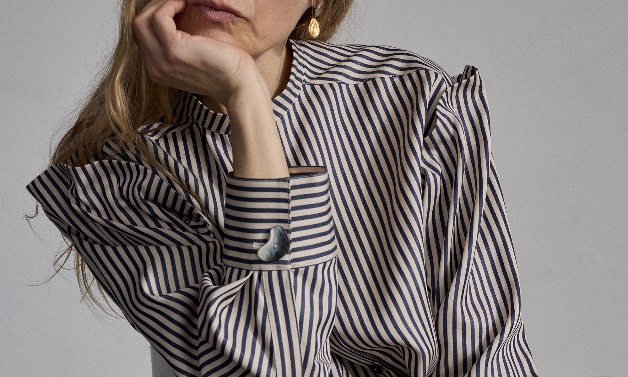 Fenella shirt cut from a soft, black washed TENCEL™ Lyocell, and finished with our signature gold kidney button on the cuff.