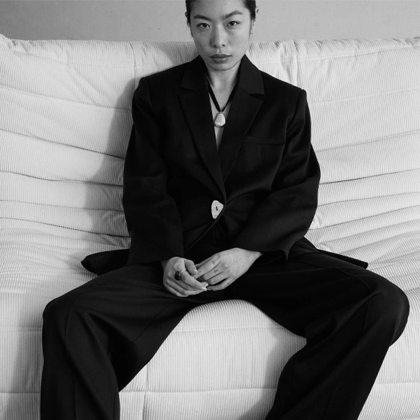 Yuki is our crew neck jumper in black marl is knitted from a lightweight blend of RWS fine non-mulesed merino wool & recycled nylon, finished with faux pearl buttons at the shoulder for a subtle point of detail.